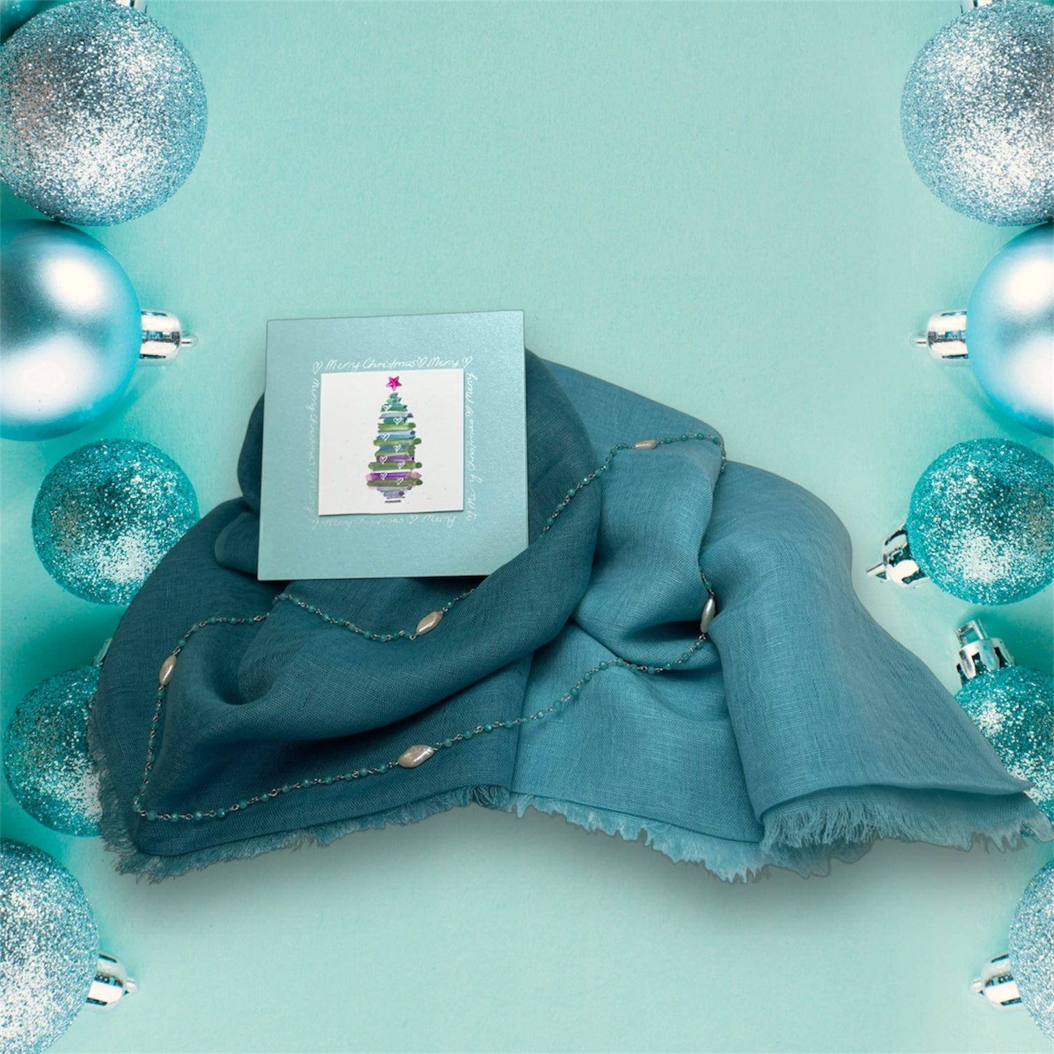 🎁 Gift Pack - Teal Scarf Ombre + Necklet and Card